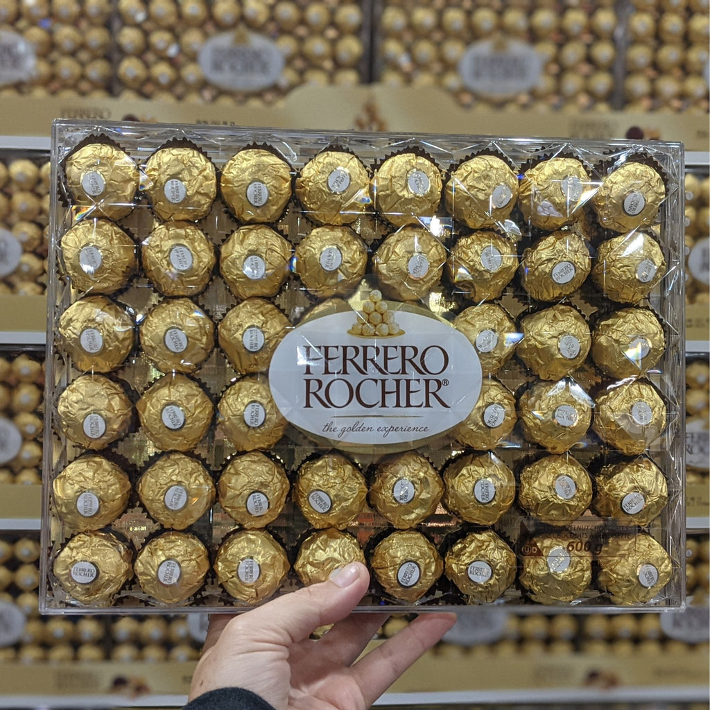 Indulge in the refined richness of Ferrero Rocher® Hazelnut Assorted chocolate squares, crafted for moments of everyday luxury. Each piece combines fine and carefully sourced ingredients into delightful, delicious layers - featuring a refined chocolate shell that envelops a creamy filling with roasted hazelnuts and crunchy crispies. All elegantly presented in individually wrapped chocolate squares.